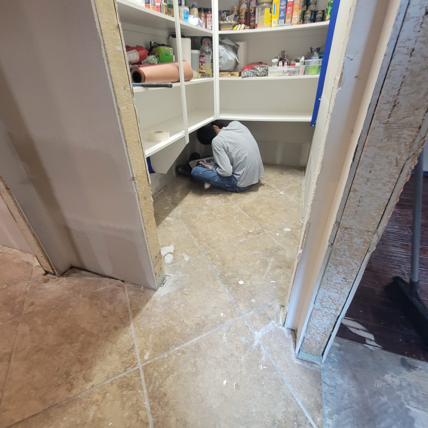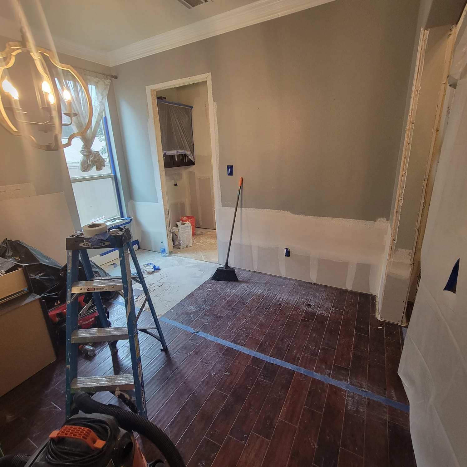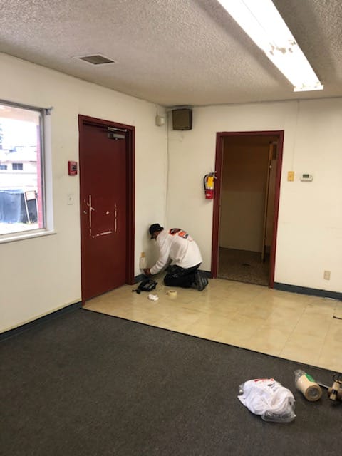 We gave a makeover to this Lutheran Church school. We redid the bathroom and flooring as well as painted the cabinets and doors.