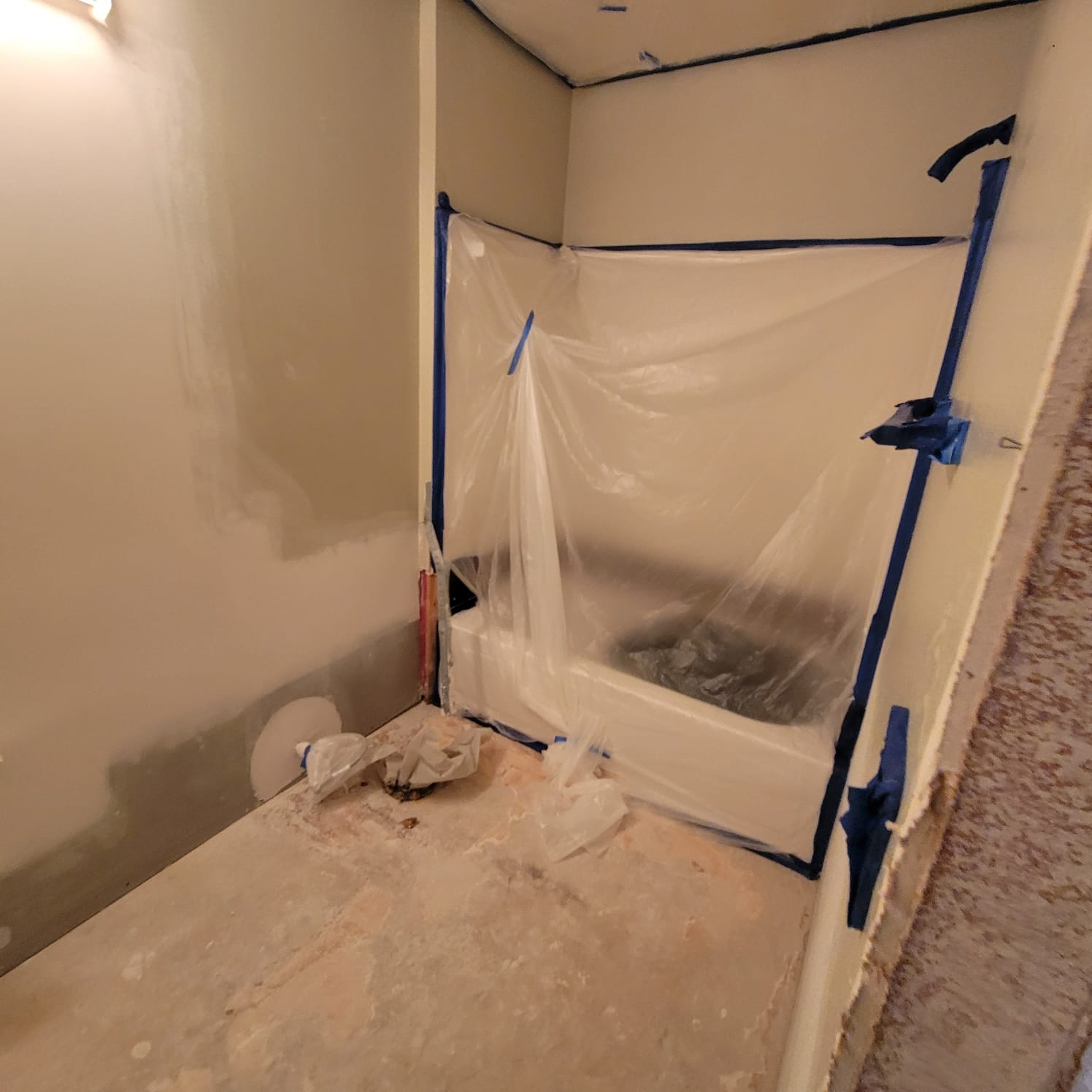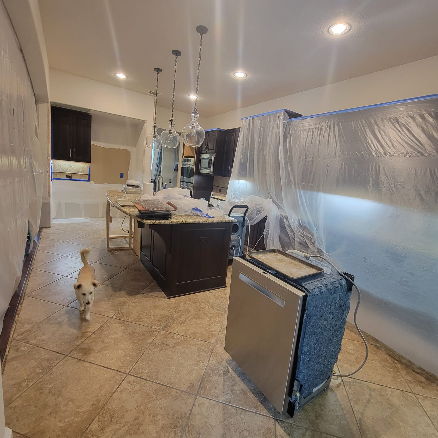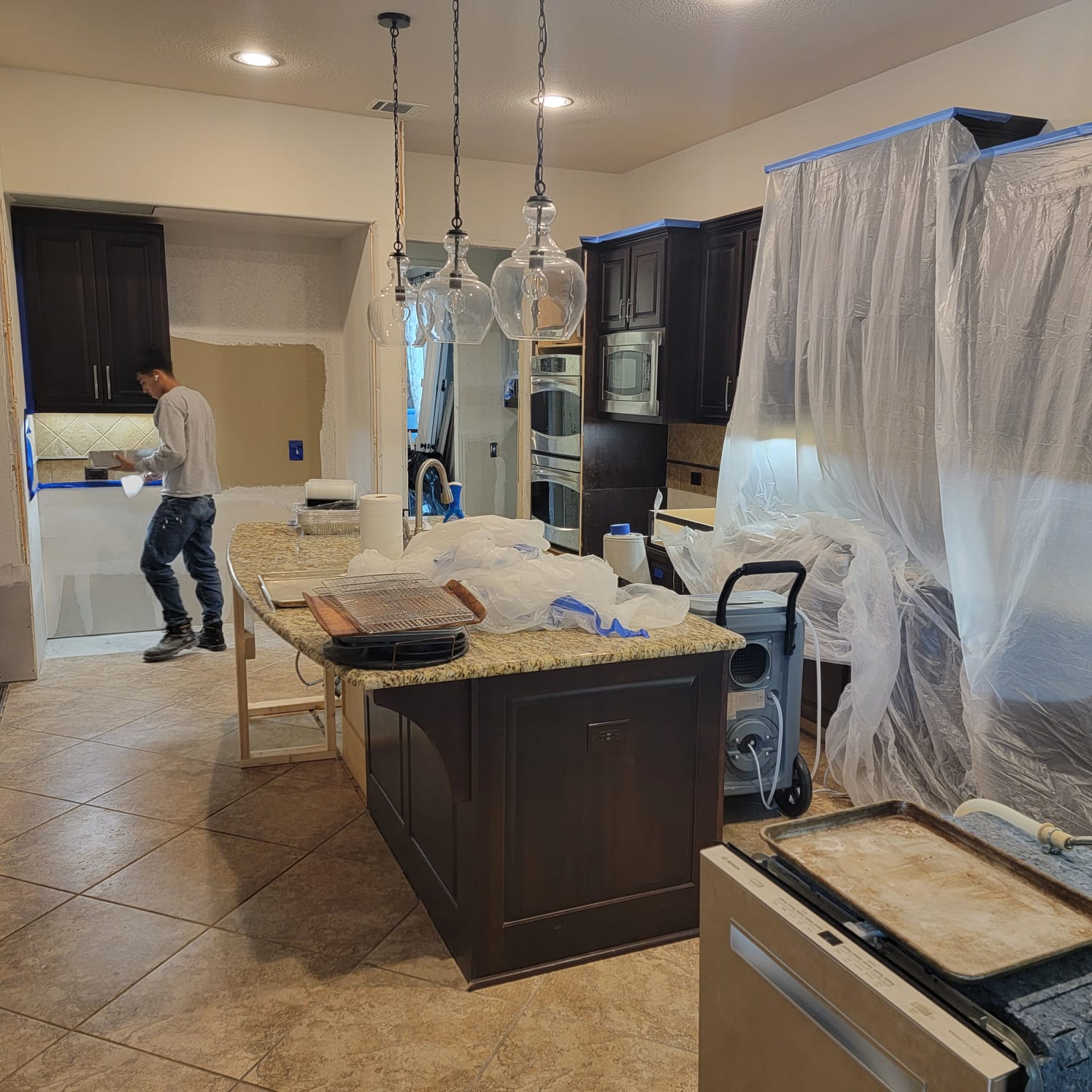 We gave a makeover to this Lutheran Church school. We redid the bathroom and flooring as well as painted the cabinets and doors.